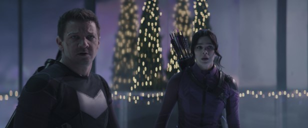 And as for Clint Barton, aka Hawkeye (Jeremy Renner)? He just wants to spend Christmas with his kids and maybe deal with the mental and physical trauma the past several years of his life have left him with (he has a hearing aid due to one too many close explosions, plus clear PTSD), but that’s not on the cards. Thanks to his Ronin costume showing up at a shady collector’s auction, he’s drawn into the action and finds himself Kate’s reluctant mentor.