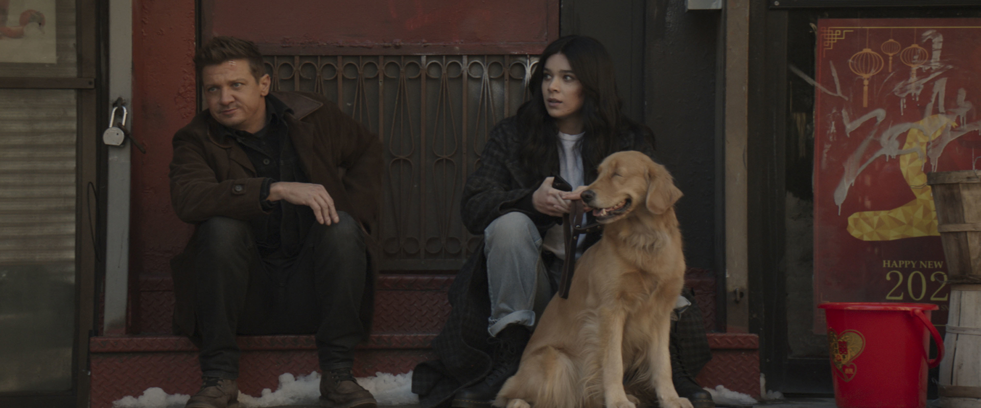 Not that it’s much of a spotlight; as a series, Hawkeye is decidedly and defiantly street level and deals with lower case h acts of heroism, and that’s fine — in fact, it’s kind of perfect. With its Christmas setting and bickering buddy banter, it feels like a Shane Black joint, and I’m actually a little surprised the Iron Man 3 (2013) shot-caller wasn’t drafted in for this one. Instead, we have showrunner Jonathan Igla, Mad Men (2010-15), and key directors Rhys Thomas and Bert & Bertie keeping things on track. The tone is light, even though there’s violence and the consequences thereof. The whole thing draws heavily on Matt Fraction and David Aja’s acclaimed Hawkeye comics series of a few years back, and while it doesn’t hit the formally daring heights of its source material, Hawkeye the TV show just about replicates the glib, self-effacing style and imports some fun iconography (Lucky the Pizza Dog and the Tracksuit Mafia, but sadly not the sobriquet “Hawkguy”, unless I missed it).