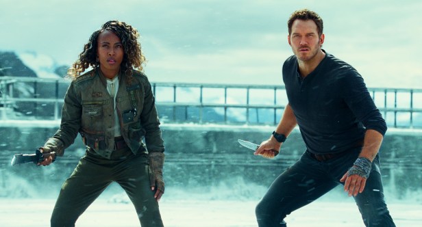 Dominion at least knows what audiences are paying to see because the action set pieces are relatively good. There’s a big velociraptor chase sequence in the streets of Malta that’s worth mentioning and a nail-biting scene where Claire comes face-to-face with a terrifying long-clawed Therizinosaurus, our heroine having to hide from the reaping lizard in a nearby pond. We also get a solid suspense scene set on a frozen lake of ice, where an armed Owen and Biosyn contract pilot Kayla Watts (DeWanda Wise) must fend off a hungry Pyroraptor (who can apparently swim, contrary to what history and science suggest).