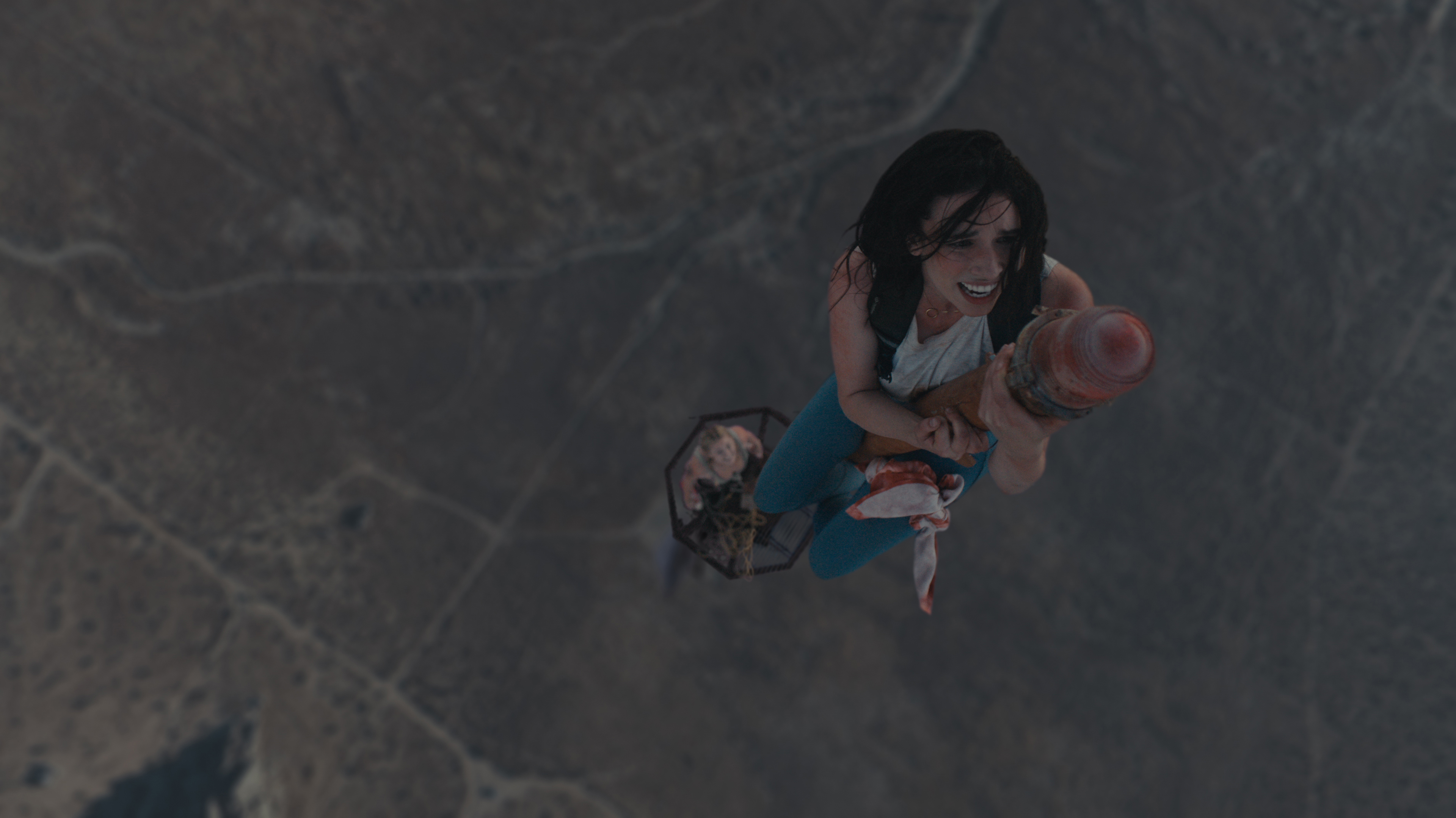 For a relatively small-budgeted picture, Fall looks excellent. Mann’s direction is great; he employs a series of crafty techniques, such as overhead drone footage, vertiginous angles, and a series of aerial shots to make the remote location unnerving while single handedly heightening the sense of isolation, fear, and the women’s’ weariness and desperation. This is further aided by the top-notch camerawork of Spanish cinematographer Miguel Olaso (credited under the pseudonym MacGregor), who has photographed imagery that enhances the story and suspense; certain moments of the movie are so effective that they may cause legitimate dizziness, or have viewers feeling light-headed. MacGregor also makes the most of the harsh natural beauty of the secluded desert setting, as well as showcasing the sheer awe of the stunning white mountain faces in the film’s prologue. There is, however, a decent amount of CGI and green screen employed throughout, but these elements work surprisingly well, and have been incorporated into the live action material almost seamlessly.
