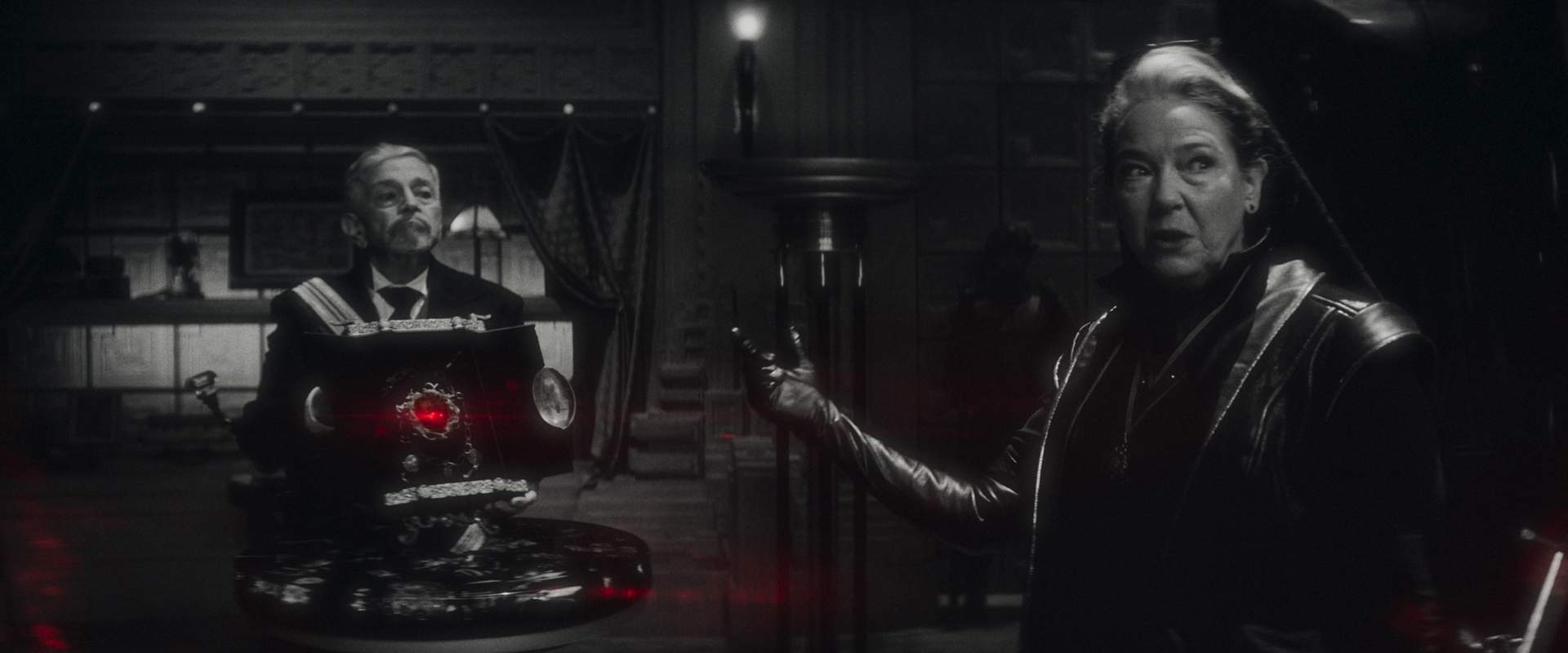 Marvel has kind of danced around their more horror-oriented properties and characters for a while now. Scott Derrickson and C. Robert Cargill reportedly jumped ship from Doctor Strange in the Multiverse of Madness when their intentions to make it a straight-up horror movie were cooly received. Ghost Rider showed up in Agents of S.H.I.E.L.D. (2013 – 20) for a minute there, and we’re supposed to get Mahershala Ali in a Blade reboot at some point, but that seems to have been kicked down the road for now. But this tight little TV special is a dyed-in-the-wool horror romp replete with monsters, magic, and gore. It’s black and white gore, though; Werewolf by Night sports a beautiful silvery monochrome palette courtesy of cinematographer Zoë White that both homages the classic Universal Monsters aesthetic and lets the production get away with a little more blood and dismemberment than we usually see in the MCU.