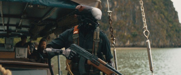 After the mission goes predictably pear-shaped, Joshua finds himself cut off and on the run in New Asia with the ostensible weapon, a robot in the form of a child he calls Alphie (Madeleine Yuna Voyles, who is very good in the role). She can control technology somehow, hence her designation as a weapon. Why the A.I.s of New Asia build new droids in the shape of children is unexamined, but personally I’m a sucker for the tough guy/cute kid dynamic, and so too is Joshua. What are the odds that he’ll bond with her and question his allegiances and worldview? What are the odds that you’ve seen this all before?