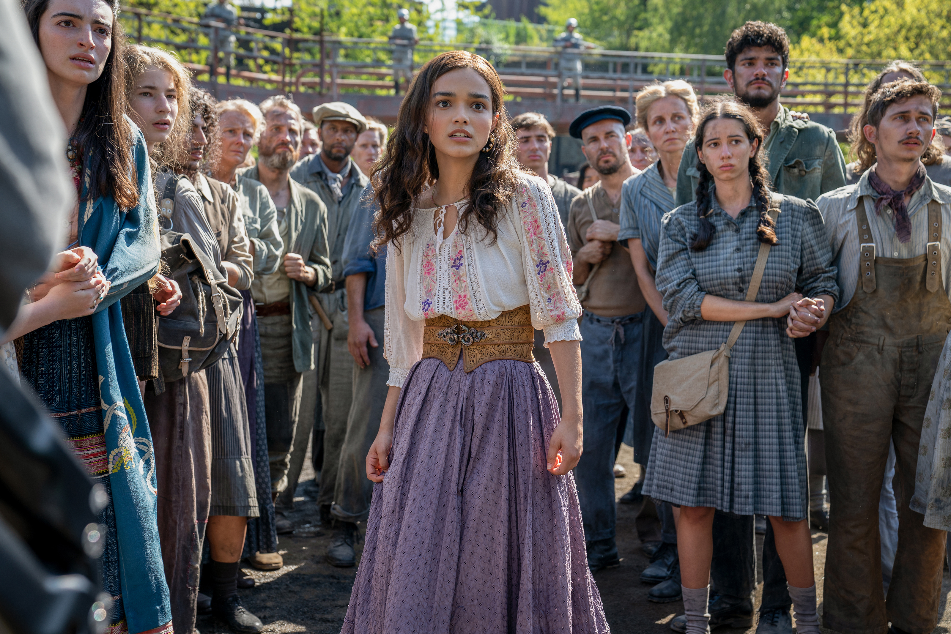 As you might guess, Coriolanus is assigned Lucy Gray, who is essentially “Woody Guthrie but a 10/10 smokeshow” with a bit of Johnny Cash sprinkled on for good measure. She’s a free spirit with a little mean streak; when we meet her, she uses a snake to spook the girl who arranged for her to be “Reaped” for the Games. She’s a member of the Covey, who is apparently a nomadic mob of minstrels who just about evoke real-world peoples like the Irish Travellers and the Romani, but the film fails to examine that (as does the book, from what I’ve read).